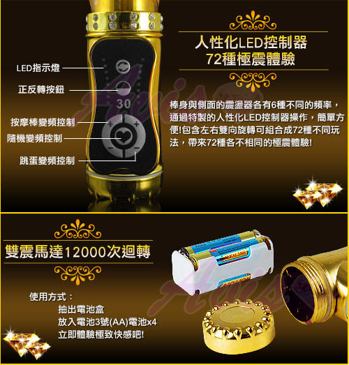 .主商品:雪豹突擊-電池110VUSB 三用頂級多功能滾珠按摩棒-金 *1
