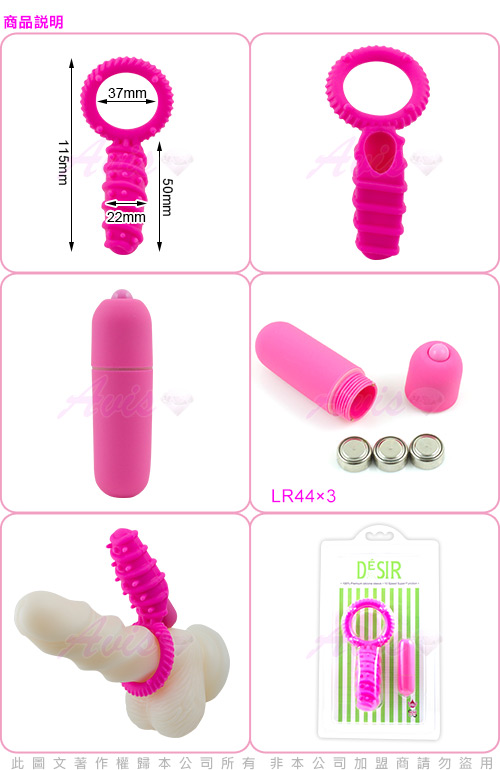 一對硅膠制造的持久震盪環,擁有10種變頻的強力震盪器使用3枚鈕扣電池,只需更換電池可多次特續使用。
