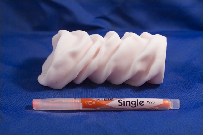 和傳統的名器外圍多半是圓弧光滑狀相比 ,小花的外型充滿了歷經鍛鍊的不規則肌肉線條