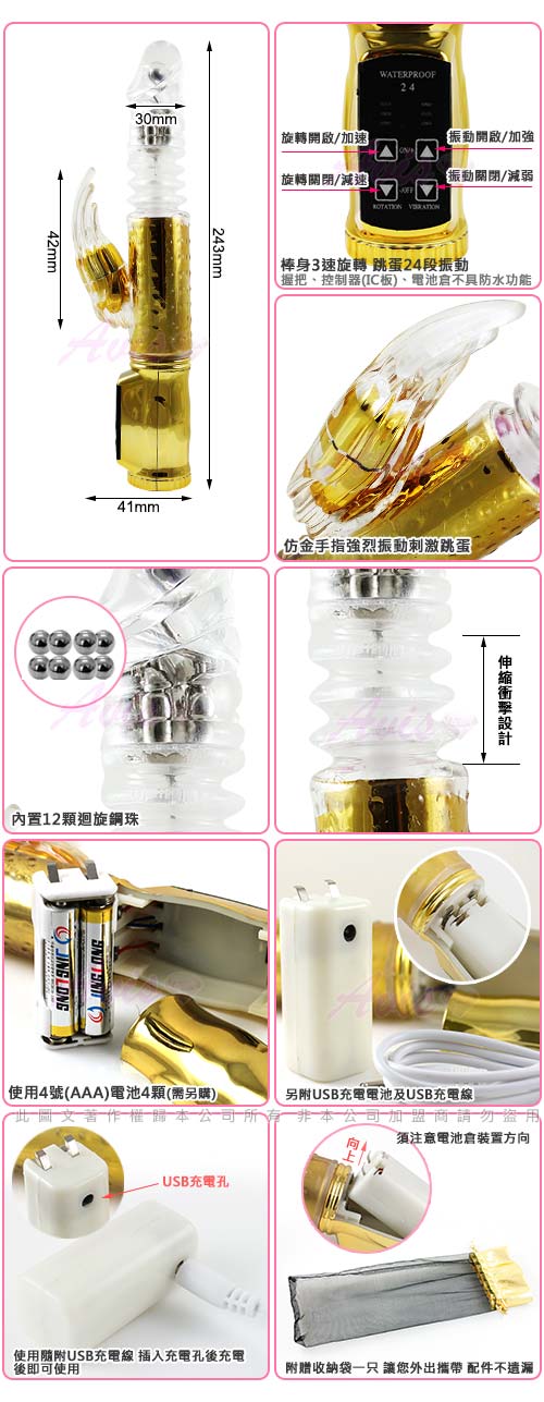 .商品名稱:第五代-加藤鷹潮吹指-72段 電池/USB 電鍍款(伸縮式)變頻滾珠G點按摩棒-金*1