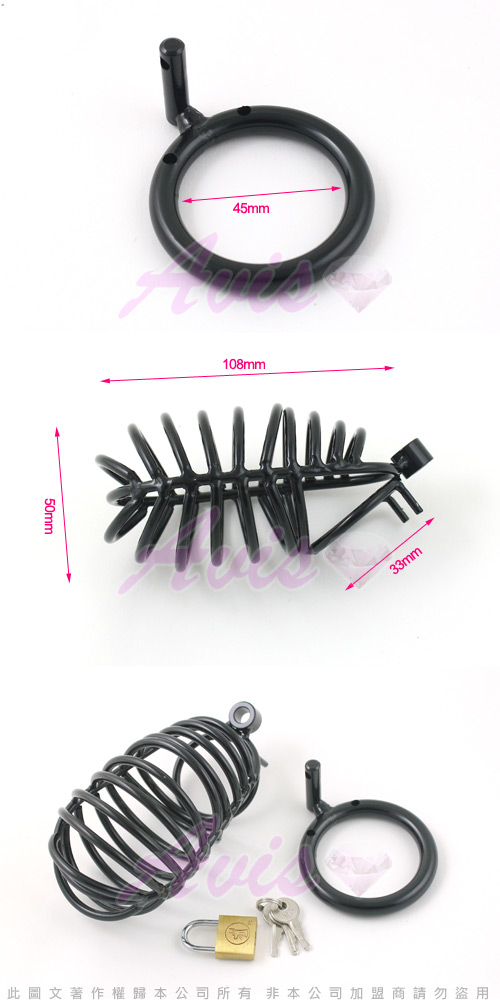 冰冷的金屬,是否降低愛人的欲望?一個金屬鳥籠加上卡環,將愛人牢牢鎖住,流暢的線條,厚實的金屬質感,可以防止手淫等行為,是非常時尚的sm貞操帶,可以全天候長時間穿戴。