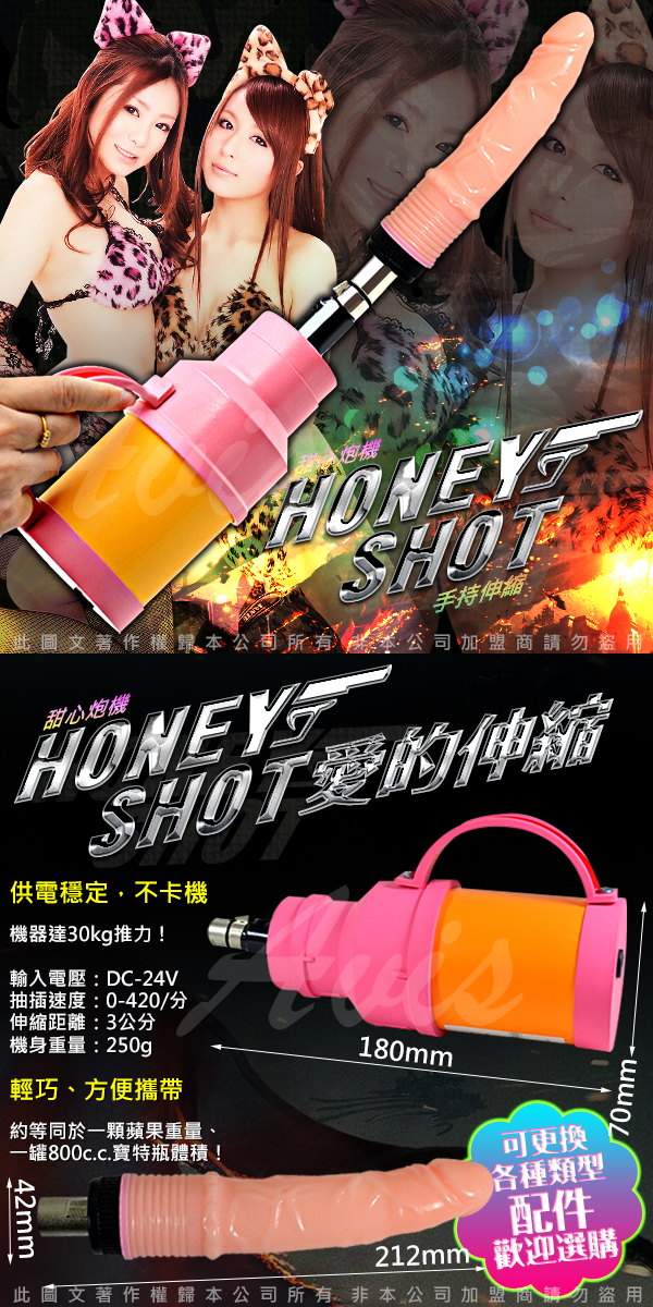.主商品:甜心火箭砲  手持式 自動伸縮抽插 性愛機器 女用砲機 附陽具棒x1