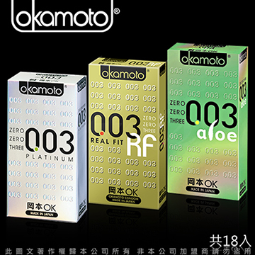 【保險套大特賣】岡本OK Okamoto 003極薄保險套經典組(18入裝 PLATINUM+RF+ALOE)