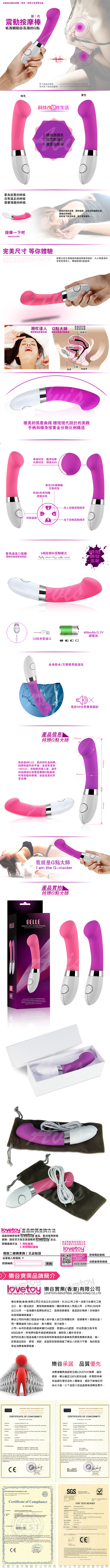 Lovetoy BELLE貝兒 5X5 鈍頭G點大濕 G點按摩棒 USB充電 紫