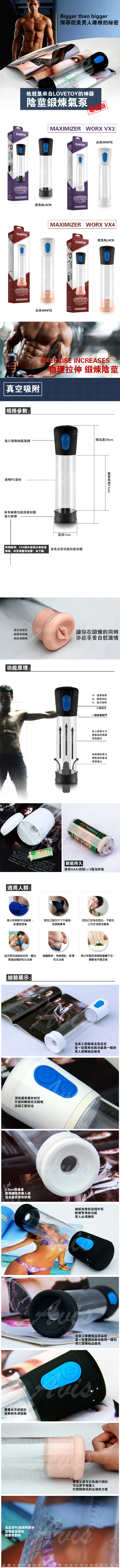 .商品名稱:Lovetoy MAXIMIZER 男根崛起 電動真空吸引 訓練自慰器 WORX VX3 黑