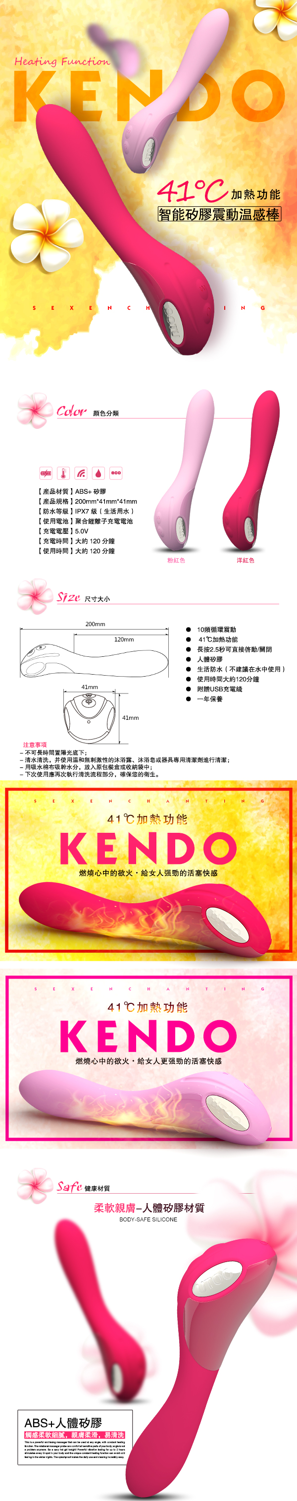 .主商品:香港UTOO KENDO 41度C智能矽膠10段變頻震動溫感棒 桃紅