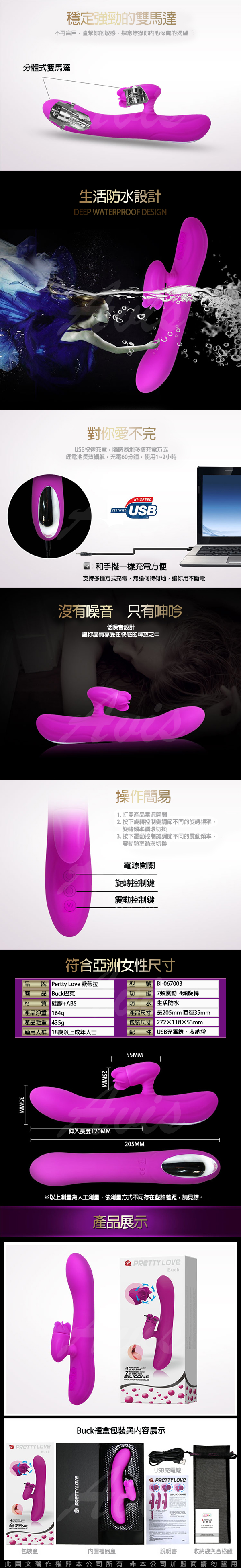 .商品名稱:Buck 巴克  4頻旋轉 7頻震動 智能迴轉 雙重刺激G點按摩棒 USB充電