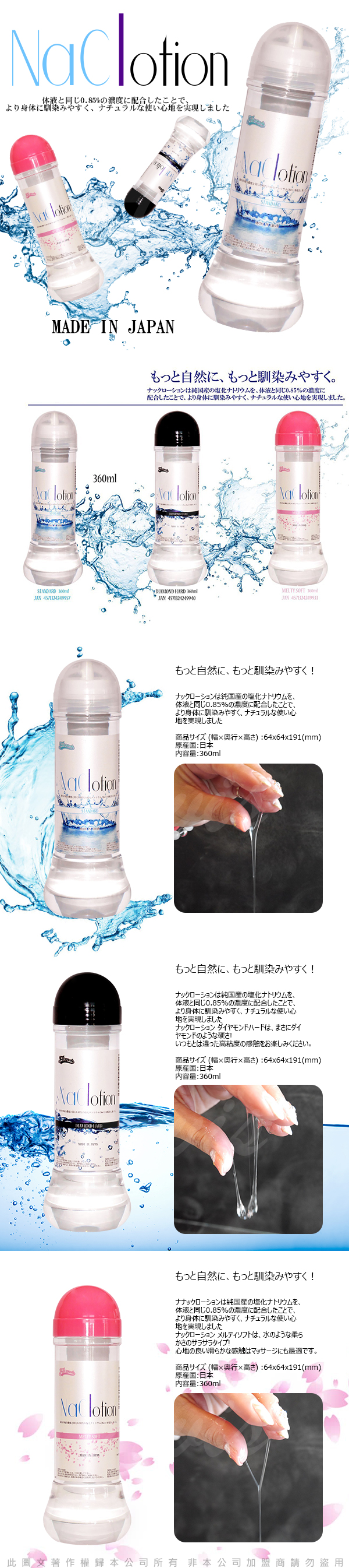 無味道的透明液狀及自然柔和的特性,讓潤滑液在使用上更自然更為舒適,排除違合感,NaCl選中的就是尋找無異感潤滑的妳/你!