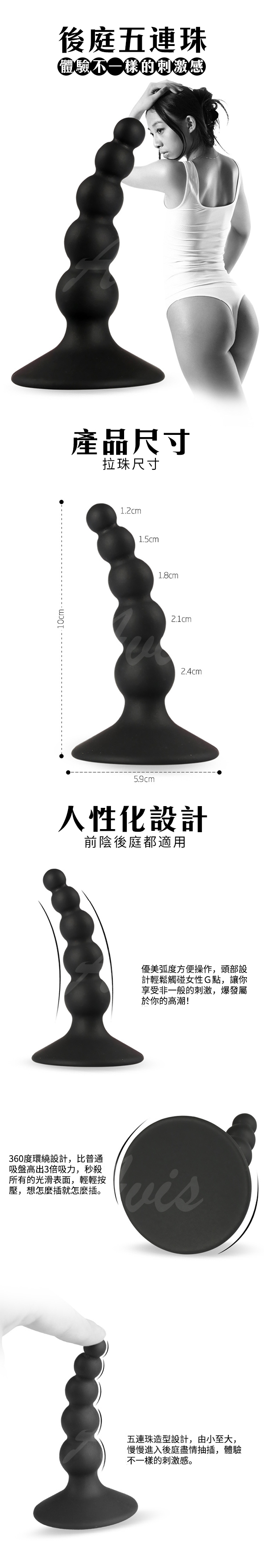 .主商品:虐戀精品CICILY 熱戀5連珠 硅膠 拉珠吸盤式快感後庭棒