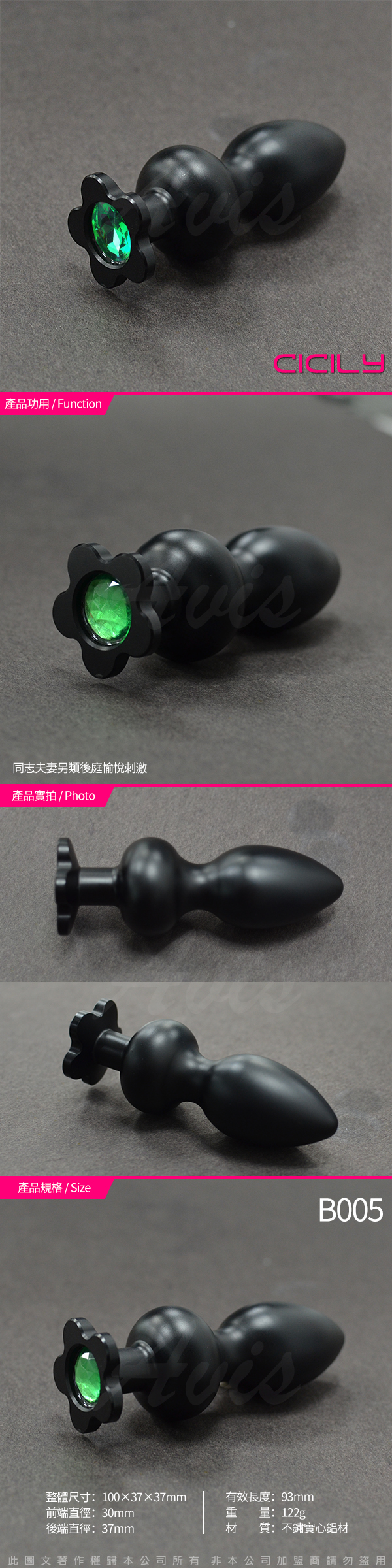 .商品名稱:CICILY 後庭小花 金屬寶石後庭塞 黑 葫蘆型