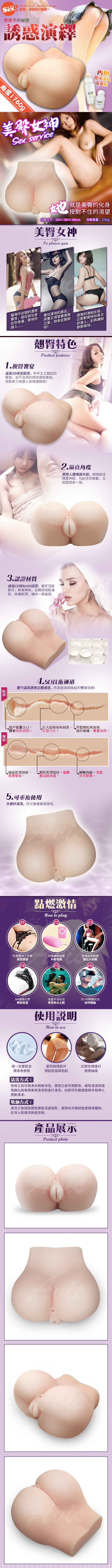 .商品內容:奈奈子的秘密 5D仿真構造私處 雙穴 性感小俏臀 內附潤滑液120ml+保養粉60ml