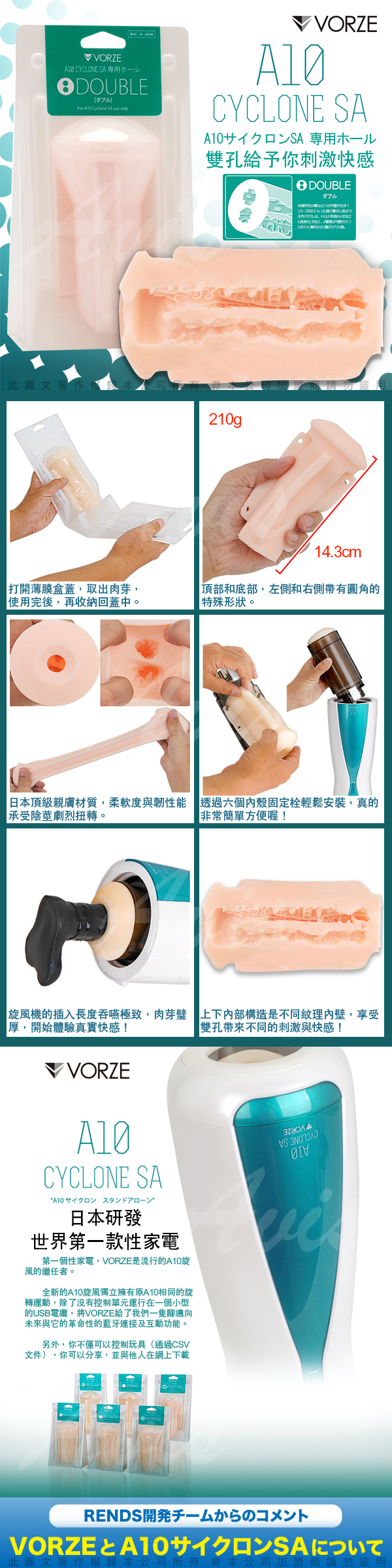 .商品內容:日本RENDS VORZE A10 CYCLONE SA A10 旋風機 專用內裝配件 (DOUBLE雙孔)