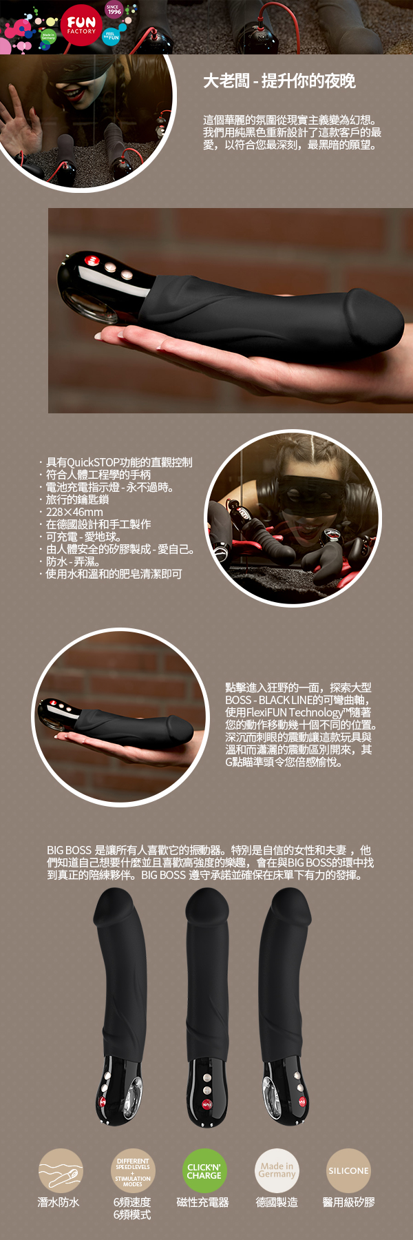 .主商品:德國Fun Factory BIG BOSS 大魔王俾斯麥 五代時尚奢華按摩棒-黑 充電式