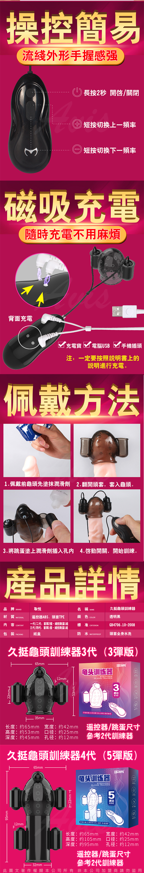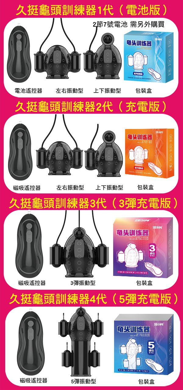 .商品名稱:取悅 久挺 12段變頻全方位龜頭訓練器 第三代 3彈充電版
