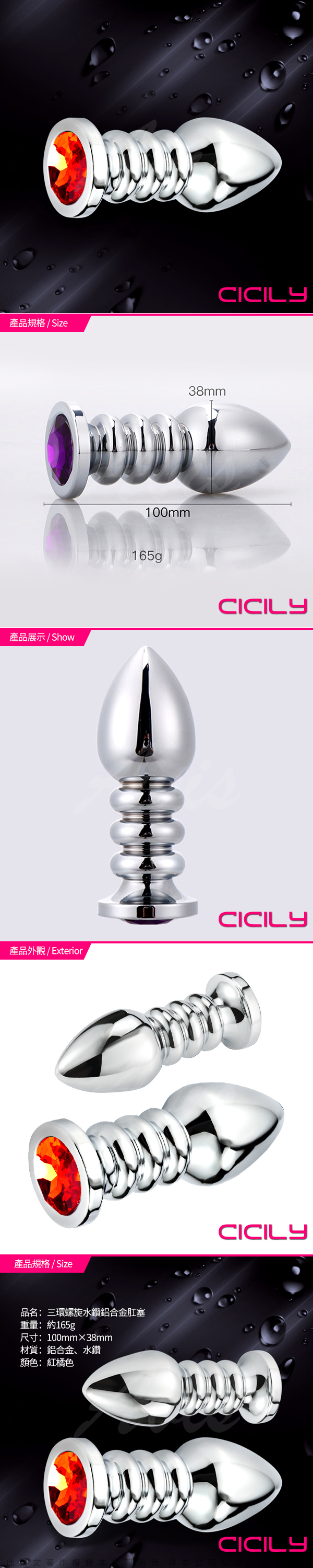 .主商品:小旋風-三螺旋金屬寶石實心肛塞