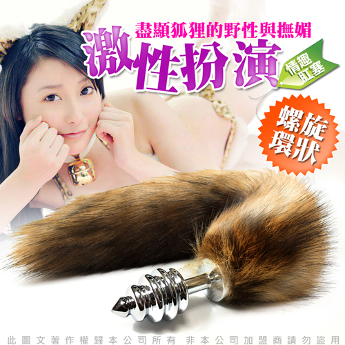 .主商品:小小狐狸精尾巴+不銹鋼後庭肛塞 螺紋造型