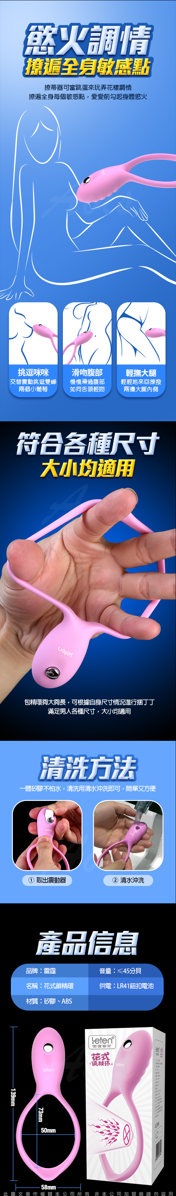 .主商品:LETEN 花式鎖精 延時包精震動環