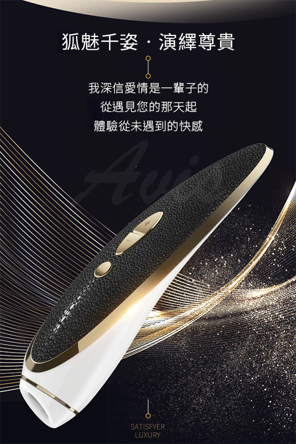 全新 Satisfyer Luxury - Haute Couture 採用超柔軟醫學級液體矽膠、黑色真皮及貴金屬精製而成,手感一試難忘。對於追求高尚生活的您,這款來自 Satisfyer Luxury Collection 的新貴必定成為您的心頭好。