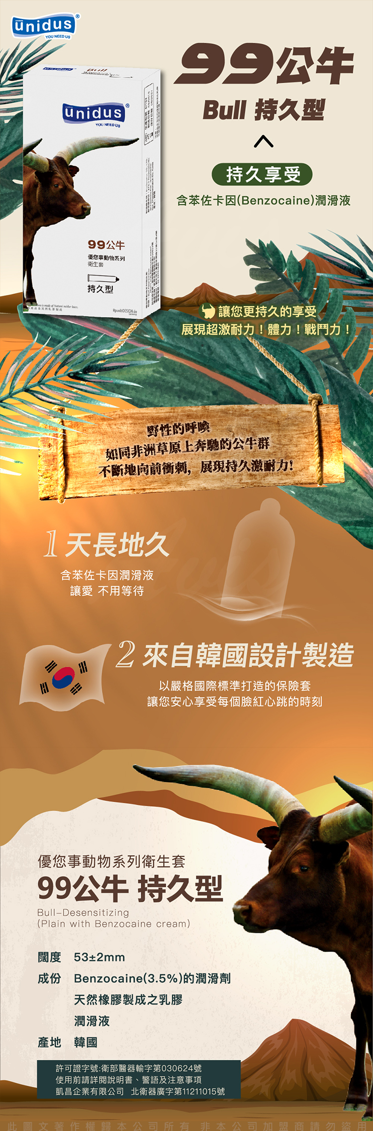 unidus優您事 動物系列保險套-99公牛-持久型 12入