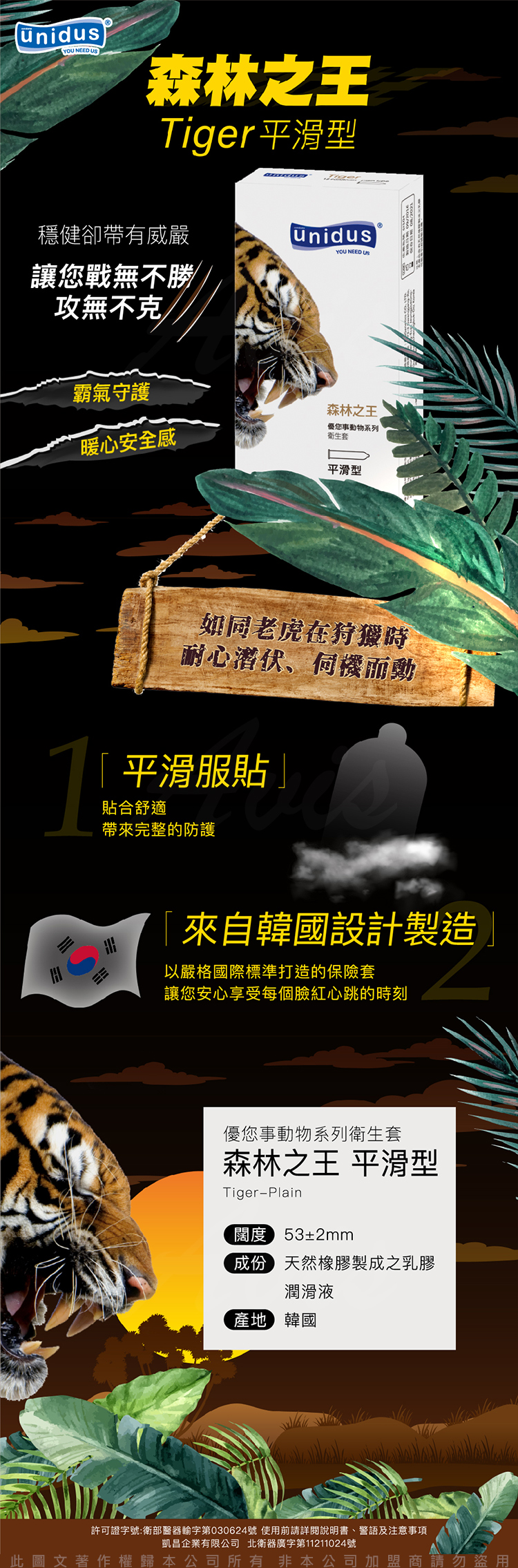 unidus優您事 動物系列保險套-森林之王-平滑型 12入