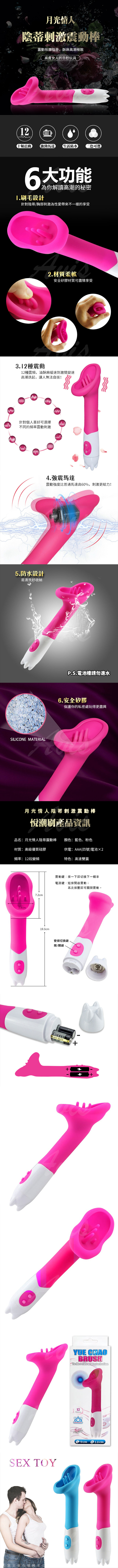 品名:月光情人 悅潮刷 12段變頻 陰蒂刺激震動棒-粉
