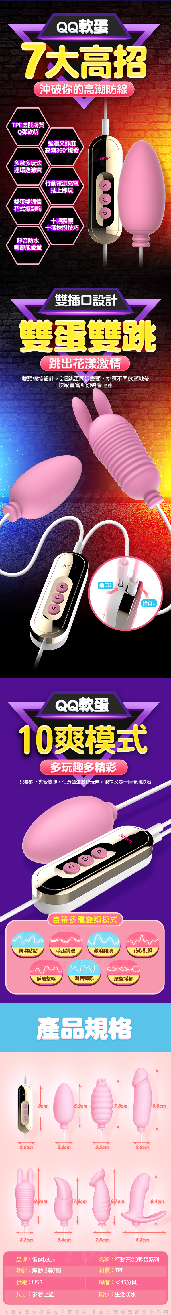 .主商品:Leten-Q軟蛋 USB直充供電隨插即用雙跳蛋-撩撥款
