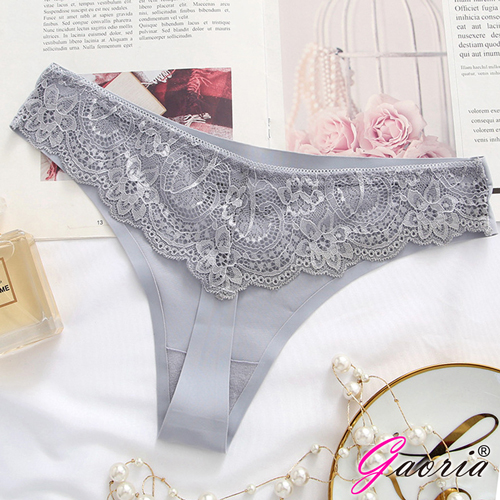 【Gaoria】寵愛甜心 無痕蕾絲花瓣冰絲 丁字褲 灰