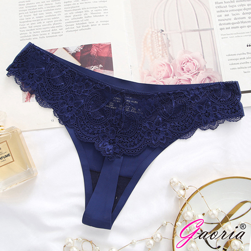 【Gaoria】寵愛甜心 無痕蕾絲花瓣冰絲 丁字褲 寶藍