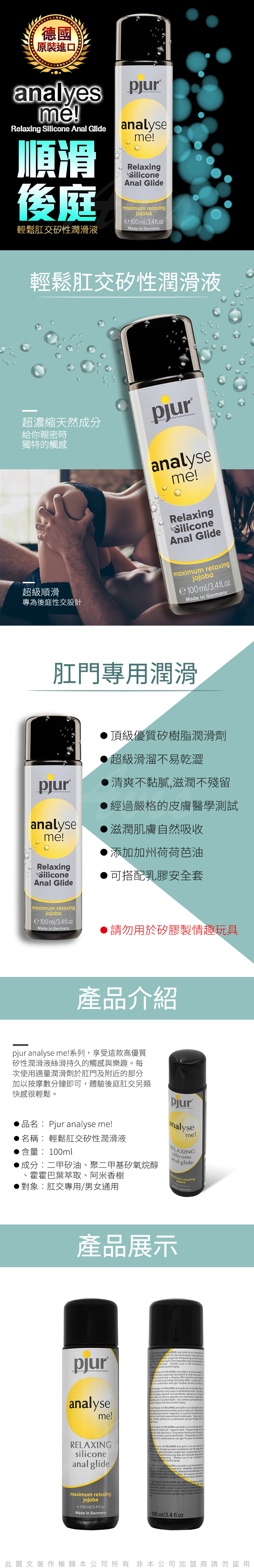 .商品名稱:德國Pjur-ANALyse me 輕鬆肛交矽性潤滑液 100ML