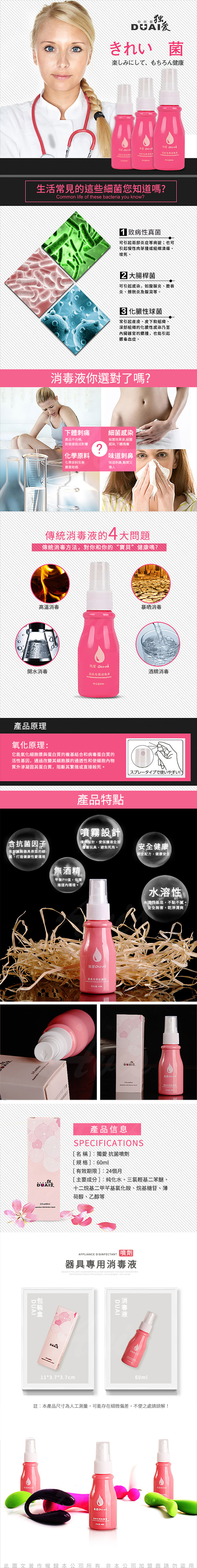 .主商品:獨愛-消毒液噴劑 60ml 成人情趣用品專用消毒抗菌清潔