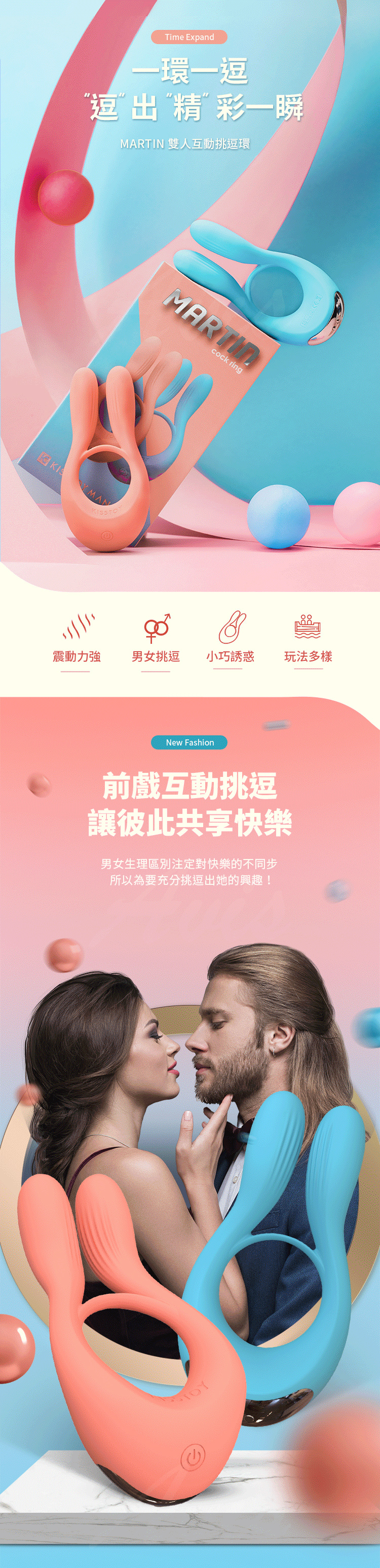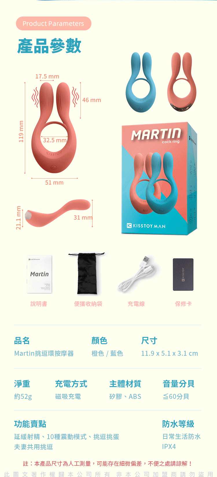 .商品名稱:KISTOY Martin 挑逗鎖精環男女共用情趣震動環-藍