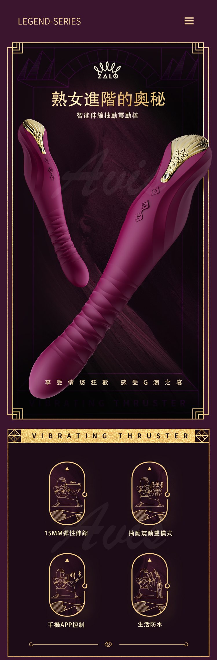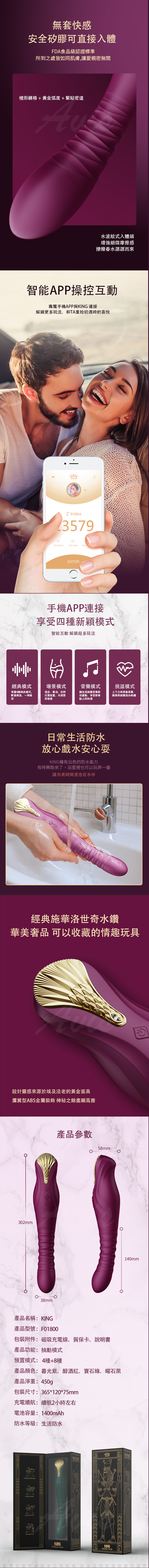 ZALO最新震動棒,KING源自古埃及國王的黃金面具,象徵征服、權力、力量。