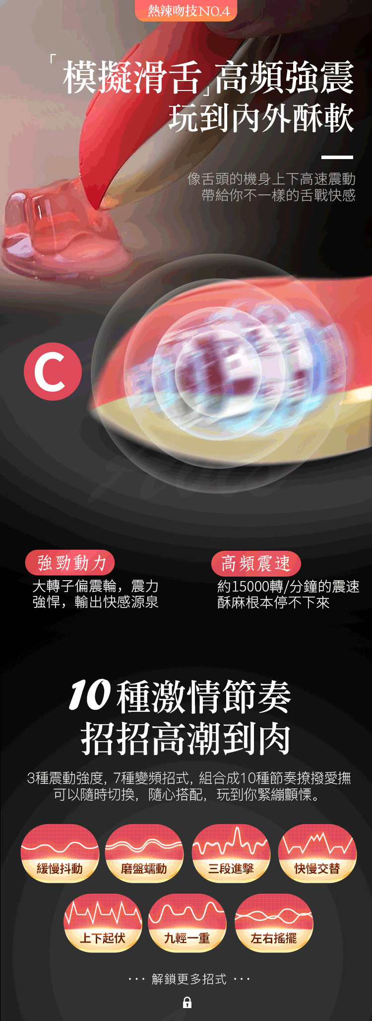3種震動強度,7種變頻招式,組合成10種節奏撥愛撫