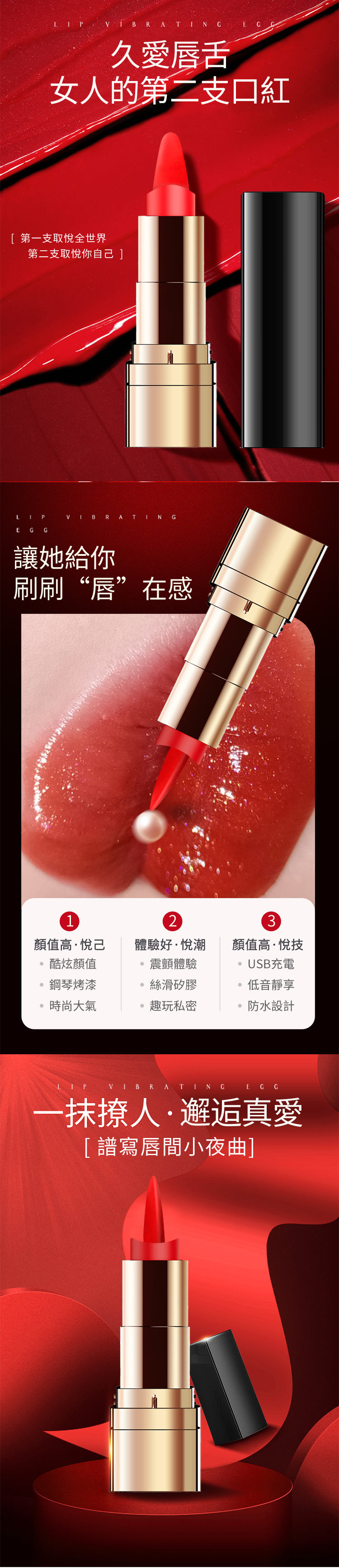 唇舌精靈-口紅10頻USB震動器 跳蛋