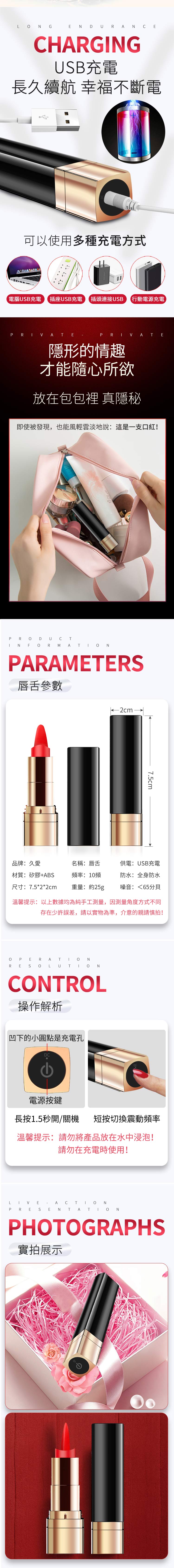 名稱:唇舌精靈-口紅10頻USB震動器