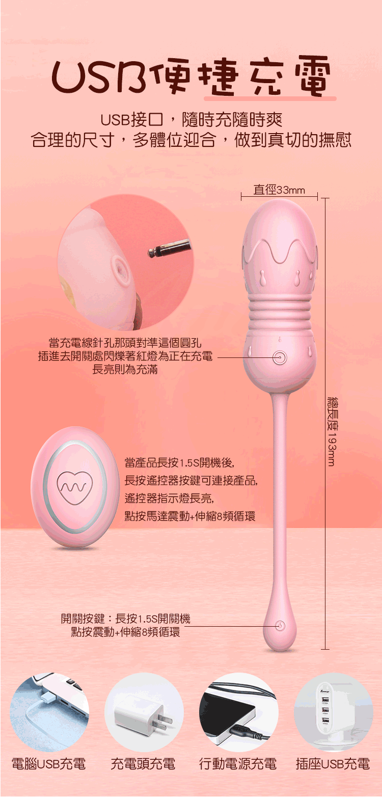 蜜愛冰淇淋無線遙控跳蛋擁有8段伸縮變頻輕鬆抵達敏感部位,刺激內外同時夾擊一同爽。無線遙控讓您一鍵在手,即使在體內也可達遙控,從此她的激情逃不出你的掌心。震動同時還全自動伸縮動力強勁,一次強有力的撞擊勝過多次慢吞吞的摩擦。此款輕鬆好入體,比手指略大一些入體毫無壓力,不撐大仙女們的嬌嫩蜜穴喔~~