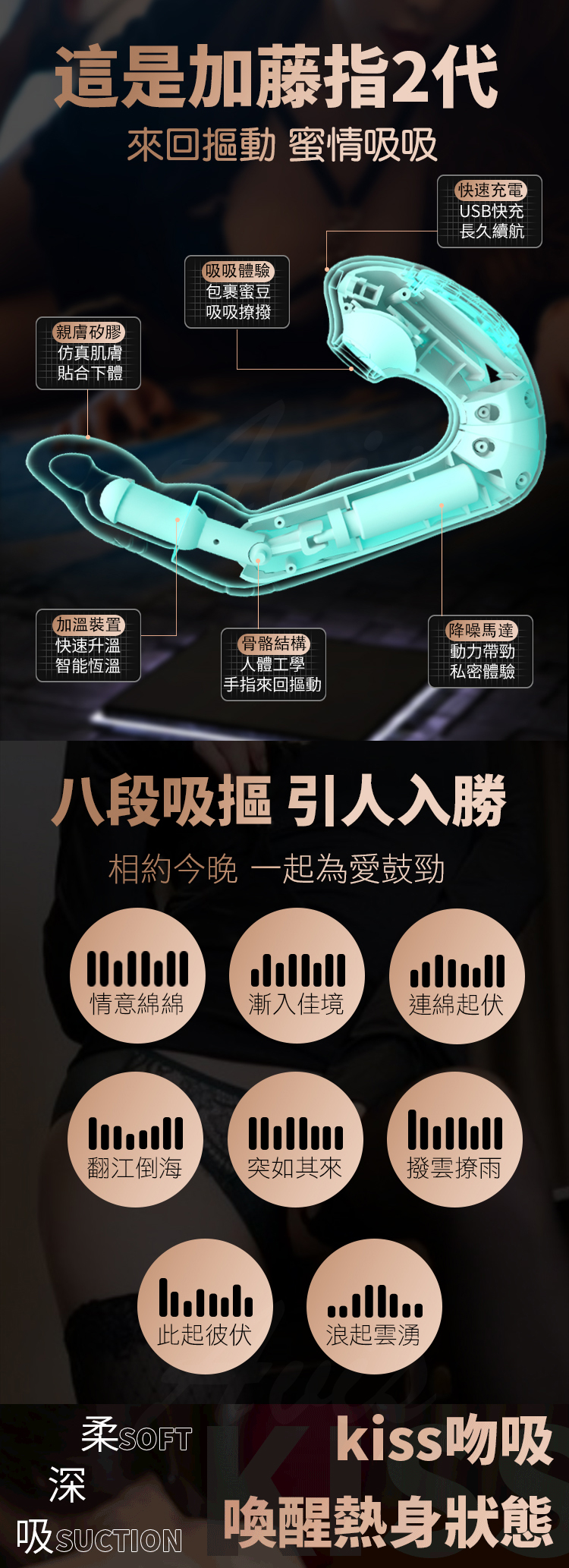 名 稱:加藤指2代 8頻摳 吸吮 一鍵加溫 矽膠充電按摩棒