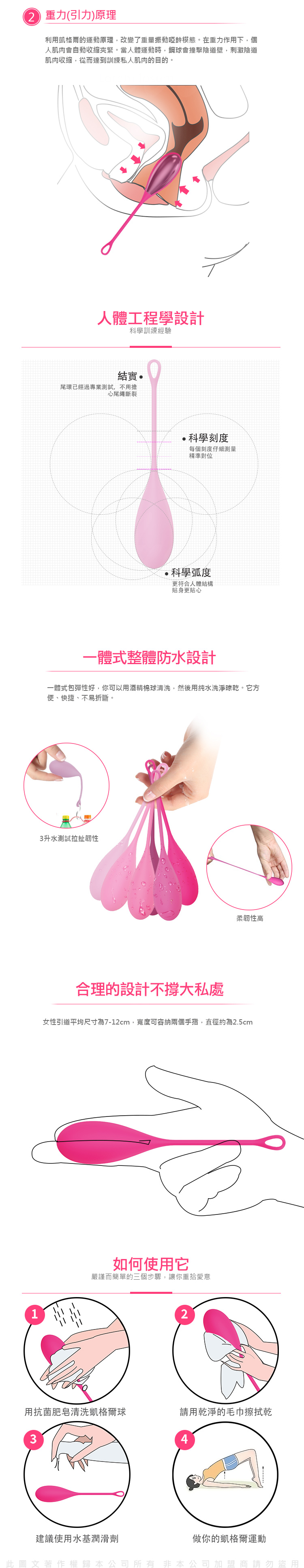 利用凱格爾的運動原理,改變了重量振動啞鈴模態。在重力作用下,個人肌肉會自動收縮夾緊。當人體運動時,鋼球會撞擊陰道壁,刺激陰道