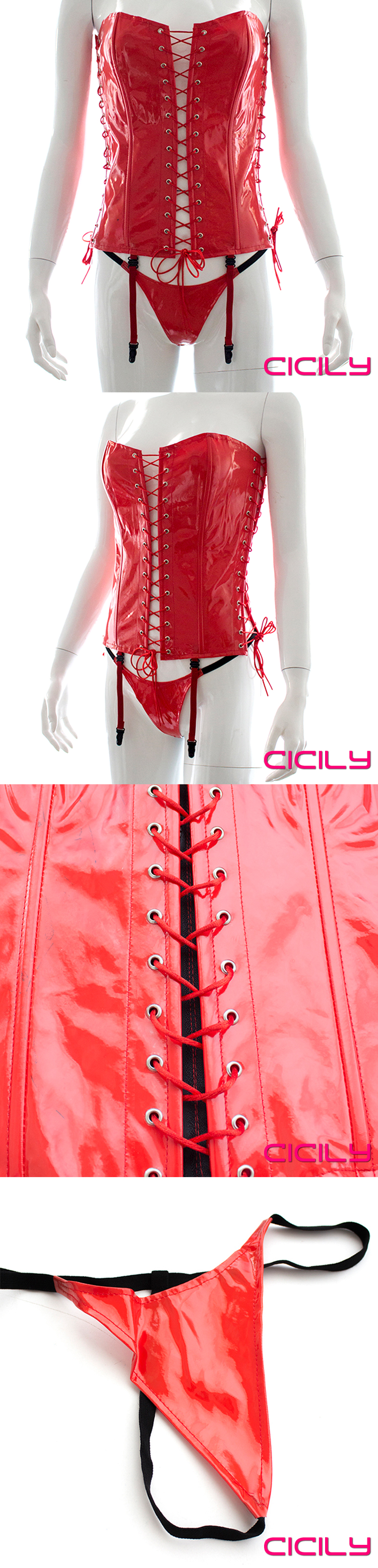 CICILY 女王風範緊身繫帶漆皮膠衣 不含鞭子/袖套-紅