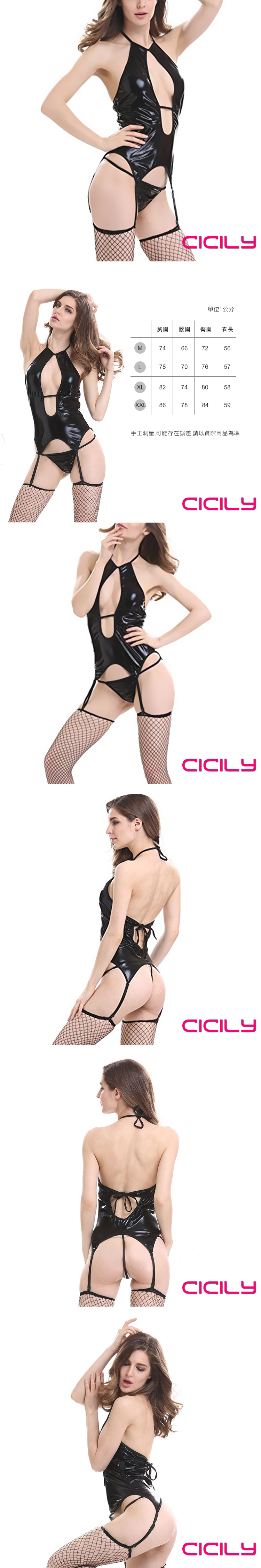 CICILY 國王皇后 鏤空漆皮質誘惑連體衣 黑 XL