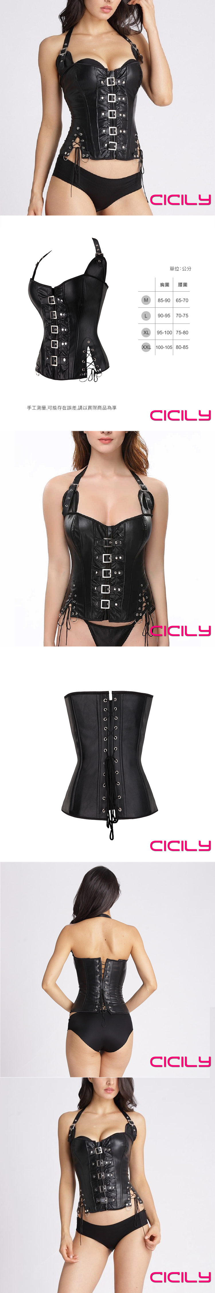 CICILY 女王的SM調教 掛脖束腰緊身衣漆皮膠衣 黑 XL