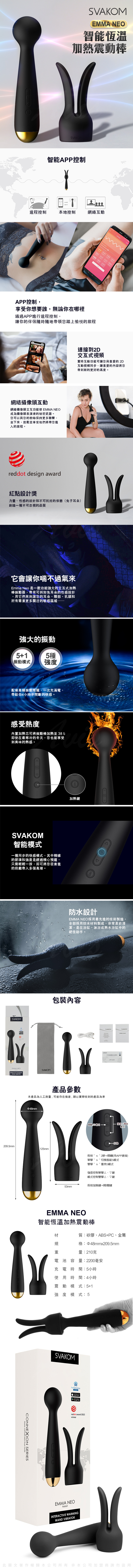 產品名稱:Svakom Emma Neo 手機智能發熱震動棒 黑色