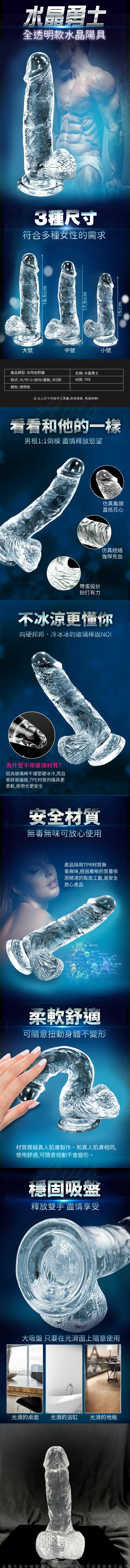 水晶勇士 仿真陽具老二按摩棒-透明-小款