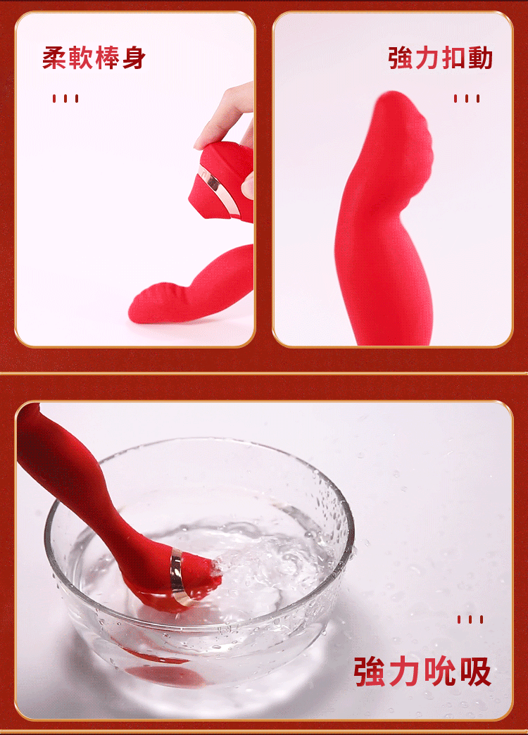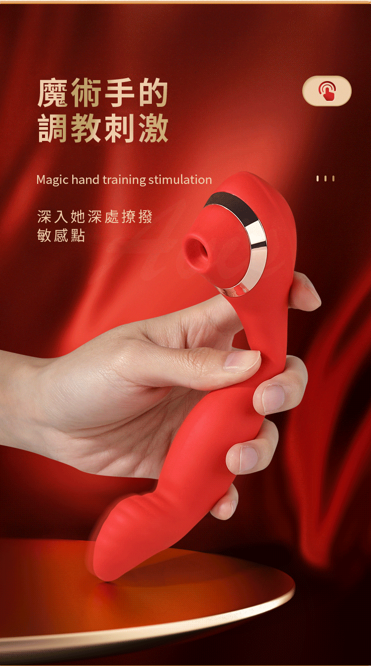 魔術指 7頻扣動x3頻吮吸矽膠震動按摩棒-可彎曲棒體