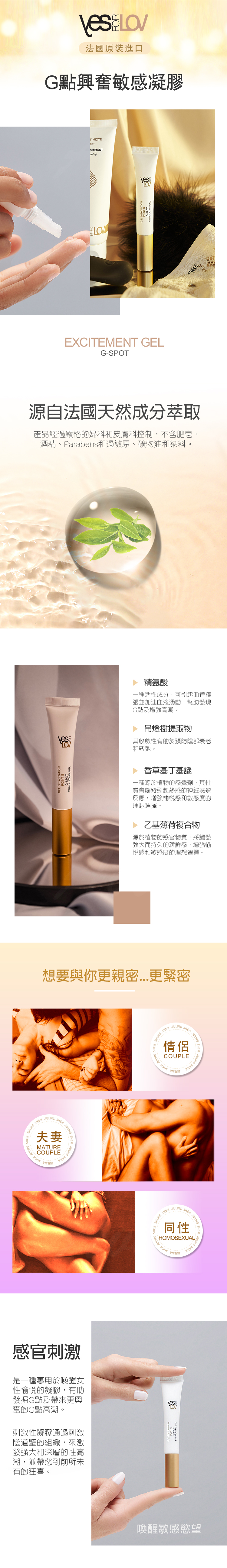 感官刺激是一種專用於喚醒女性愉悦的凝膠,有助發掘G點及帶來更興奮的G點高潮。