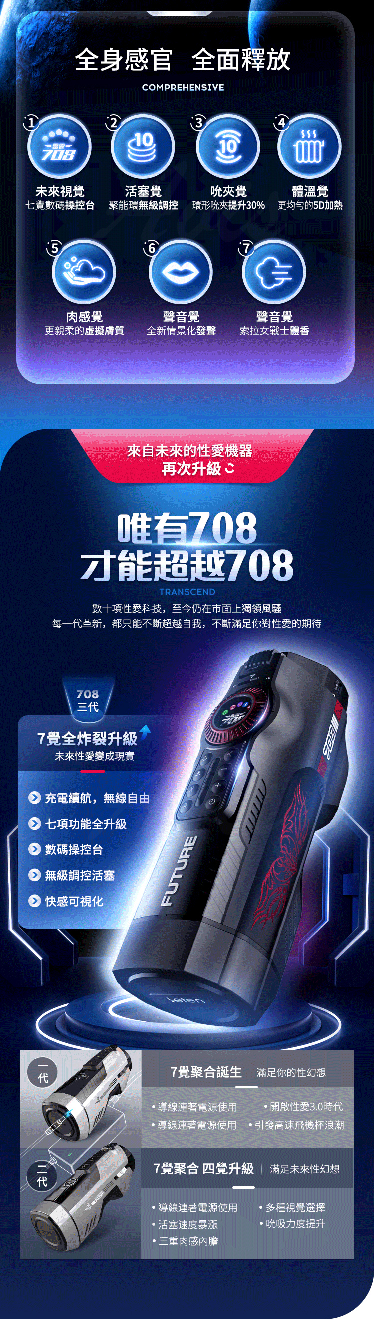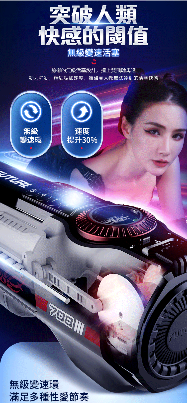 產品名稱:Leten|708未來艙三代|電動伸縮全自動飛機杯