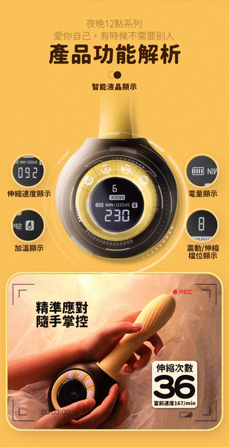 功能:智能液晶顯示,伸縮10頻,震動10頻,自動加
