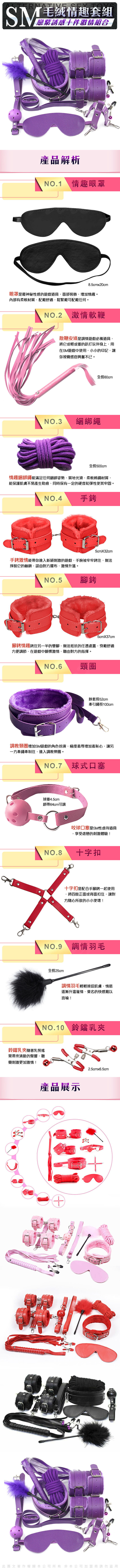 .商品內容:虐戀精品CICILY-無禁的愛 手銬/腳銬/繩子/鞭子/眼罩/脖子套/口塞/乳夾/羽毛/十字扣 十件組 紫