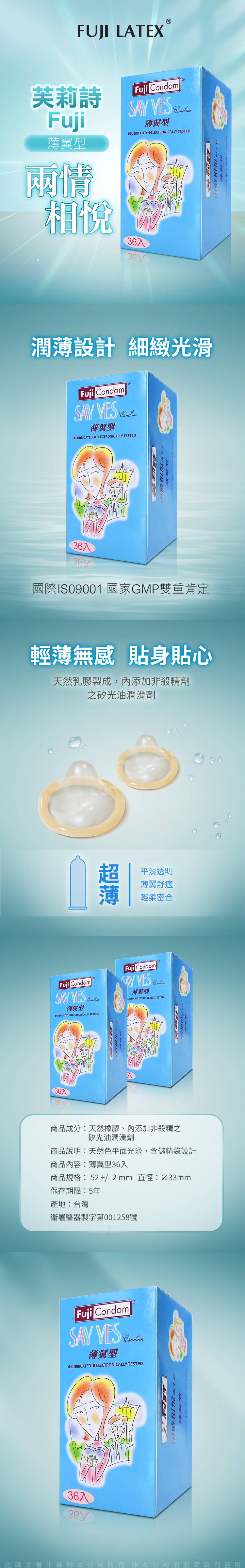 芙莉詩|兩情相悅|衛生套 保險套 薄翼型 36入