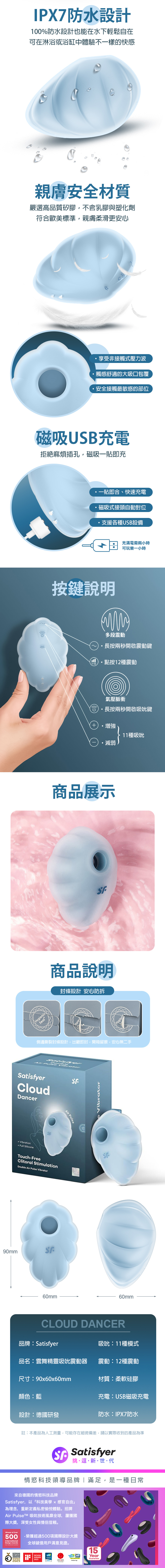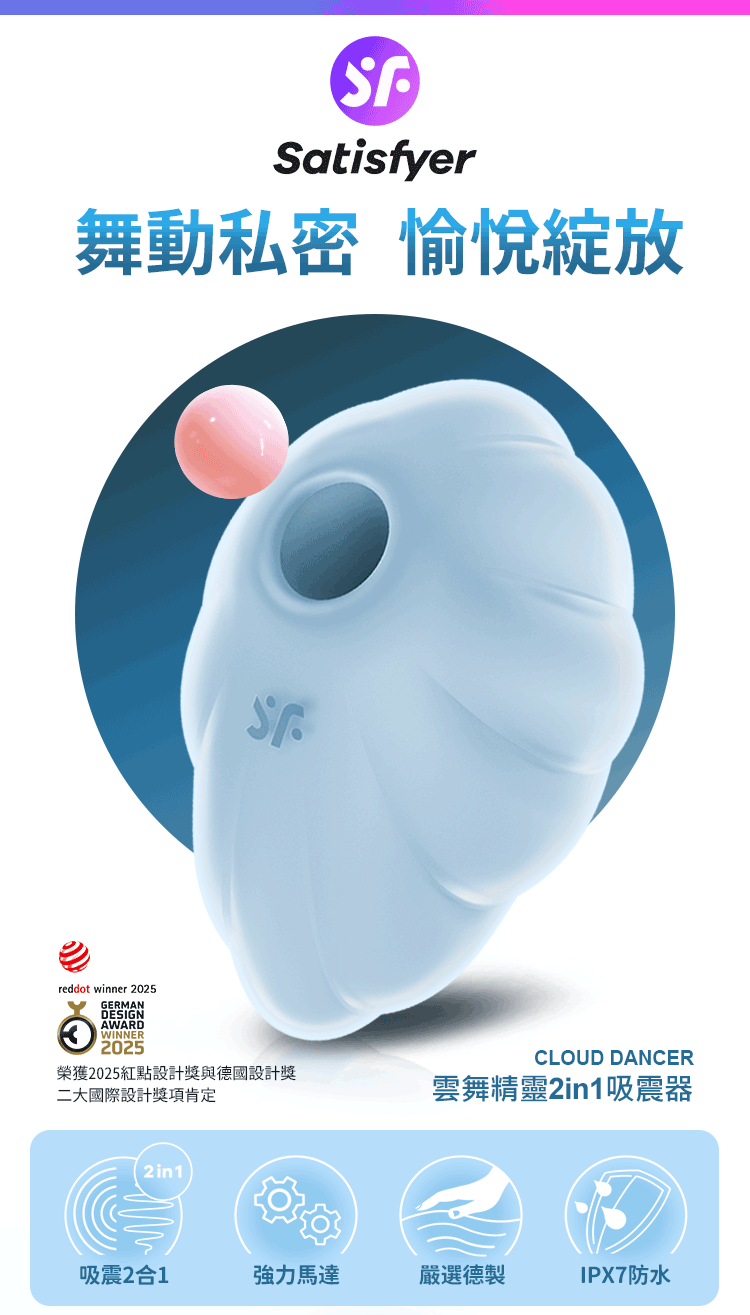 品名:Satisfyer|Cloud Dancer 雲舞精靈|漸層吸吮陰蒂震動器 粉藍